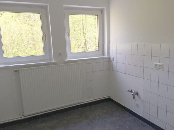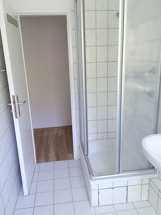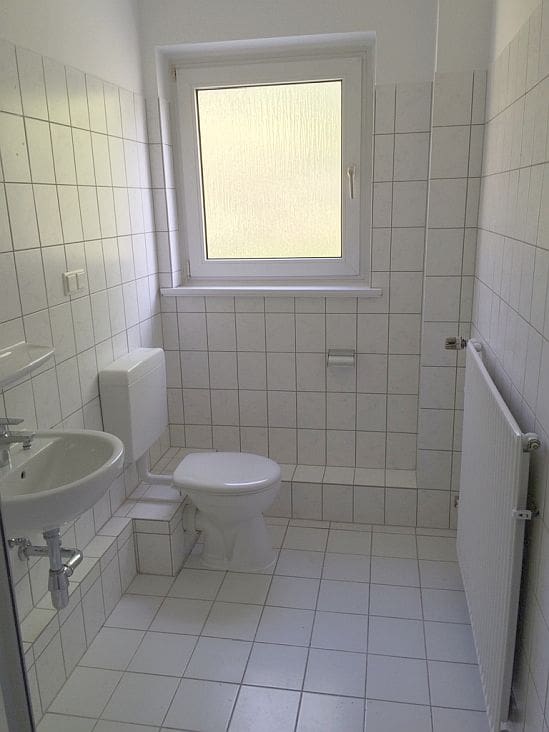 – sehr schön aufgeteilte 2-Zimmerwohnung mit Küche, Badezimmer und Küche, Flur und Balkon – hell gefliestes Duschbadezimmer mit Duschkabine – Waschmaschinenanschluss in der Waschküche – große Küche mit weißen Fliesenspiegel – langer Flur mit Nische – geräumiges Wohnzimmer mit Zugang zum Balkon – Schlafzimmer zur Hauseingangsseite – Balkon mit ausreichend Fläche – sämtliche Bodenflächen bis auf Badezimmer sind mit einem Vinylbodenbelag ausgestattet – alle Decken und Wandflächen sind mit Raufaser tapeziert und weiß gestrichen – Mieterkeller mit Stromanschluss und Bodenraum